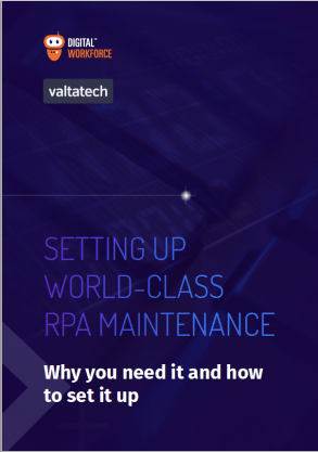 This free new guide written in collaboration with our partners at Digital Workforce explores the topic of RPA maintenance and introduces the different RPA maintenance models with a view to helping you scale up your RPA programme.