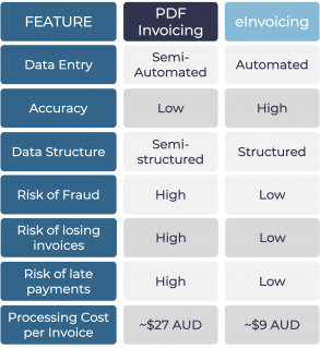 The table below outlines the main benefits of moving from PDF invoicing to eInvoicing.